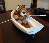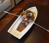 В носовом отсеке стоит мр3 плеер и динамик. Он может грести под музыку, танцевать на воде… Сам не ожидал, что так прикольно получится.