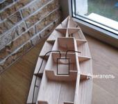 По конструкции-в данном исполнении во внутреннем отсеке для удобства монтажа и регулировки шпангоуты не нужны-обклейте внутреннюю часть стеклотканью место под подмоторный шпангоут лучше усилить дополнительно.Все бальзовые детали нужно пропитать эпоксидной смолой .Свободные отсеки заполнить легким пенопластом-поможет при появлении пробоины-бальза хоть и будет обклеена стеклом материал достаточно нежный.Ц.T для начала 1/3 от плоскости транца-будет нырять двигаете назад и наоборот.Выбранная Вами модель-модель F1-E1кг В.Сенфа (ФРГ) 80-х годов.Всю начинку желательно располагать как можно ниже-меньше опрокидывающий момент при резком повороте.вариантов крепления крышки несколько-от закручивания по периметру саморезами до заклейки скотчем можно сделать в виде пенала-в любом случае нужно смонтировать палубу -рамку.