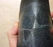 Нужной стеклоткани плотностью 100г/кв.м и 50г/кв.м найти не смог, и поэтому решил провести эксперимент: сделал пробную пропитку клеем ЭДП (Дзержинск) четырех слоев спанбонда 60г/кв.м. Пропитал примерно 100кв.см., на это ушло 10г. смолы и 1г. отвердителя. Изделие получилось достаточно твердое на ощупь; эластичность такова, что треснуло при перегибе с малым радиусом на угол более 90гр.