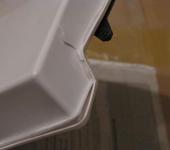 А теперь о печальном: несмотря на то, что коробка во вполне удовлетворительном состоянии лодка пришла с битым корпусом - крупные трещины на корме и одном из бортов, и до кучи огромные щели между панелями. Написал в ХК, посмотрим, что ответят.