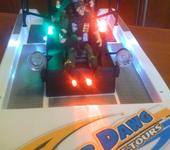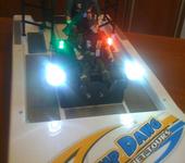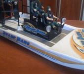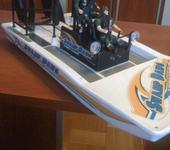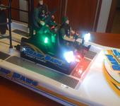 Все,собрал глиссер ,пришлось поменять мотор и регулятор убрал черную прокладку,серву убрал вбок-сейчас работает на акк-х 3S-1000 или 1300 mah,на воде не пробовал ,а по полу тащит будь здоров! Поставил навигационные огни и посадил десант!Фотки выложу по позже.
