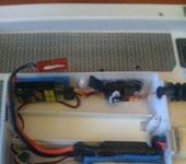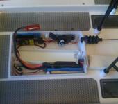 Батарейный отсек может подмокать, поэтому я ничего кроме батареи не стал внизу размещать - регулятор и приёмник закрепил сверху на перегородке.