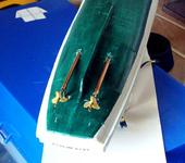 Мой корабль оказался слишком тяжел (почти до палубы осел) из-за того, что слишком много шпаклевки наложил (несимметрично вырезал шпангоуты, потом пытался довести шпатлевкой, короче неправильно подошел к процессу 😃. Но я и не планировал его делать постоянно плавающим.