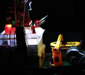 не это для освещения акватории. Константин положи в этот корабль 3,5кг груза/балласта/ но только дома в ванной. Ставить большой мощьности мотор нет смысла, он со своими обводами просто зарывается в волну, которую сам же и создает, увеличение скорости тут играет плохую роль.