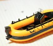 С начала взялся за лёгкое. Вырезал части бортов в районе швартовочных тумб и закрасил в чёрный. Ну вроде получилось, ни чего не сломал. Попробовал сделать отметки глубомера, нравится. Старая шлюпка мне не нравиться, хотел заказать другую, но решил не много поэкспериментировать. Выделил ватер линию, ориентировался на фотки зодиака, палубу закрасил, спереди натянут брезент, типа багажник. Далее изготовил 10 рымы, закрасил в чёрный и установил. Поставил подвесной мотор. Пока всё сохло, изготовил тумбу под приборную панель,и рукоятку газа, и пару огнетушителей. Установил стекло, сделал ручки для переноски, и протянул через рымы тросы. Ну вот что вышло. Делал впервые, буду рад любому мнению и советам. Дальше возьмусь за буксир;)