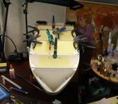 Так. Приехали двигатели, подруливающее устройство с регулятором, два комплекта винтов (40 мм, 3 и 4 лопастные), якоря, и немножко декораций (флаг, прожекторы, радары).