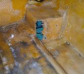 Заклеивал обычным снаружи, в смолу добавил каплю жёлтой краски, зацарапал пластик( а то отскочит на раз) и получилось как новое!