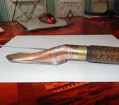 Из дерева изготовлен болван водометной трубы. Опытный образец решено изготовить из листовой меди толщиной 0,25мм. Участок трубы в зоне рабочего колеса из листовой латуни толщиной 0,5мм. Для изготовления этого участка трубы, подгонки лопастей колеса и спрямляющего аппарата по диаметру и в дальнейшем для сборки водомета была выточена из эбонита оправка. Вот что получилось.