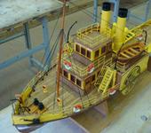 …Здравствуйте друзья. Как то сам по себе увлекательный процесс реконструкции движется к завершению и верёвки вешать становится уже некуда… Модель представляющая из себя собирательный образ колёсного парохода-буксира начала 20-го века обретает свой окончательный вид.Модель богато инкрустирована нитями из натуральных и синтетических волокон а также кожи(животных).Во как получилось.При изготовлении модели применялась технология интарсии и техника маркетри а также пространственной филиграни.Кроме этого она украшена элементами орнамента. Но самое главное удалось достигнуть потрясающего эффекта,а именно,модель одинаково хороша как вдоль так и поперёк…См.фото…