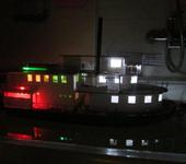Проект замечательный, но освещение как на современных яхтах. Я бы порекомендовал использовать светодиоды “теплый белый” с последовательно включенным резистором, для уменьшения яркости. Бортовые огни рекомендую вынести в фонариках, выполненных из латунных трубочек с прорезями. Такой яркости свечения, как у Вас по тем временам даже представить не могли 😃