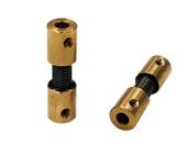 Купить прут нержавейки Ф=4мм и трубку из дюрали в строймагазине, втулки капролон или графитнаполненный полиамид, посадить колокол мотора сразу на ось убрав промежуточные соединения, вибрации и потери в соединениях, цена вопроса копейки. Если есть доступ к токарному, то и втулки и стопоры грибного винта точатся легко или не дорого.