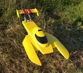 Стоит он на боковом поплавке, для лучшего прохождения поворотов, правда с одной стороны.