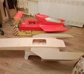 Видно, что струя залетает на палубу ближе к корме и летит прямо в мотор. Появилась мысль сделать небольшую боковую площадку ,примерно в том месте где залетает вода. Примерно от кормы до середины участка на палубе, короче не на всю длину от поплавка. Шириной примерно 50мм. Может поможет.
