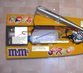 В моем детстве не было спец. судомоторов. Брали простой МДС или КМД (а других и небыло) и на токарном станке стачивали ребра охлаждения. Потом вытачивалась рубашка и клеилась на смолу к обточенной головке двигателя… А трубы большие, чтобы мотор в режим вошел - в резонанс. При этом достигаются максимальные обороты и мощность. У гоночных авиамоделей тоже бывают такие трубы.