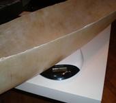 После кристаллизации смолы форма с большим трудом была снята с болвана, который был частично разрушен. Форма не пострадали и сидит крепко на болване. Вес формы до обрезания и обработки составил 580г.