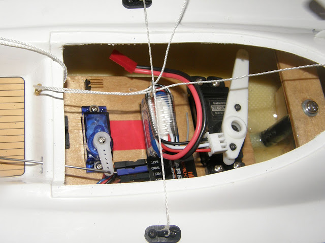 Я уже писал, что облегчал киль и внутреннюю начинку. Сейчас яхта ездит на 800 мАч литии с самодельным БЕК в лебёдке. Это не столько легко, сколько удобно - полностью зарядить борт за какие-то полтора часа, или подзалить его прямо у воды! При семивольтовом питании мотора лебёдки катался до 4.5 часов без дозаправки, батарея не просаживается.