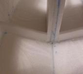 - с внутренней стороны продавливаются канавки для лучшего сгибания потолочки. Я это делаю вилкой по линейке;