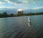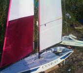 Установил новые паруса ! Результат отличный! при слабом ветре яхта ХОДИЛА и при курсе бейдевинд скорость приличная( со старыми парусами дрейфовала бы наверно)!