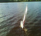 Всем доброго времени суток! Прошло некоторое время, я думал даже продать яхту и купить другую дороже,(для покупки даже продал свою хорошую фотокамеру) но покупателей не нашлось и я продолжаю пытаться сделать яхту ходящей. Скроить паруса из цветочной пленки у меня так и не вышло :пленка мнется рвется и полученные результаты меня не удовлетворили -метры разной пленки обрезки и “паруса” отправлялись в мусорное ведро! То же с изготовлением нового (длиннее на 4 см )киля:лучше заводского никак не получается!