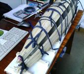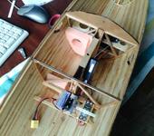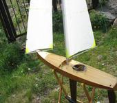 Теперь про внутренности: серва на паруса стоит Towerpro 9805BB 16Oгр/20кг\0,2 сек. на руле GWS Park HPX 19гр\3,6кг. регулятор Turnigy 8-15a UBEC. приемник Turnigy 2.4 9X. аккумулятор “засандалил” по неопытности 3000 mah 2S (157 гр). От этого может и с весом проблема. Бульб пришлось лить с минимальной массой 2,2 кг. Ну и фото: на просушке. Воды в трюме пока нет ни капли )))) .Удачи.