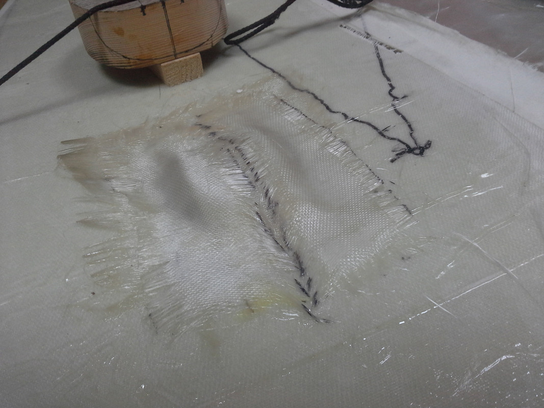 Углубляющую деталь пока не склеил - холодно, придётся тащить домой. Сама деталь из той же стеклоткани что и корпус с палубой, у обычного пластика нет волокон