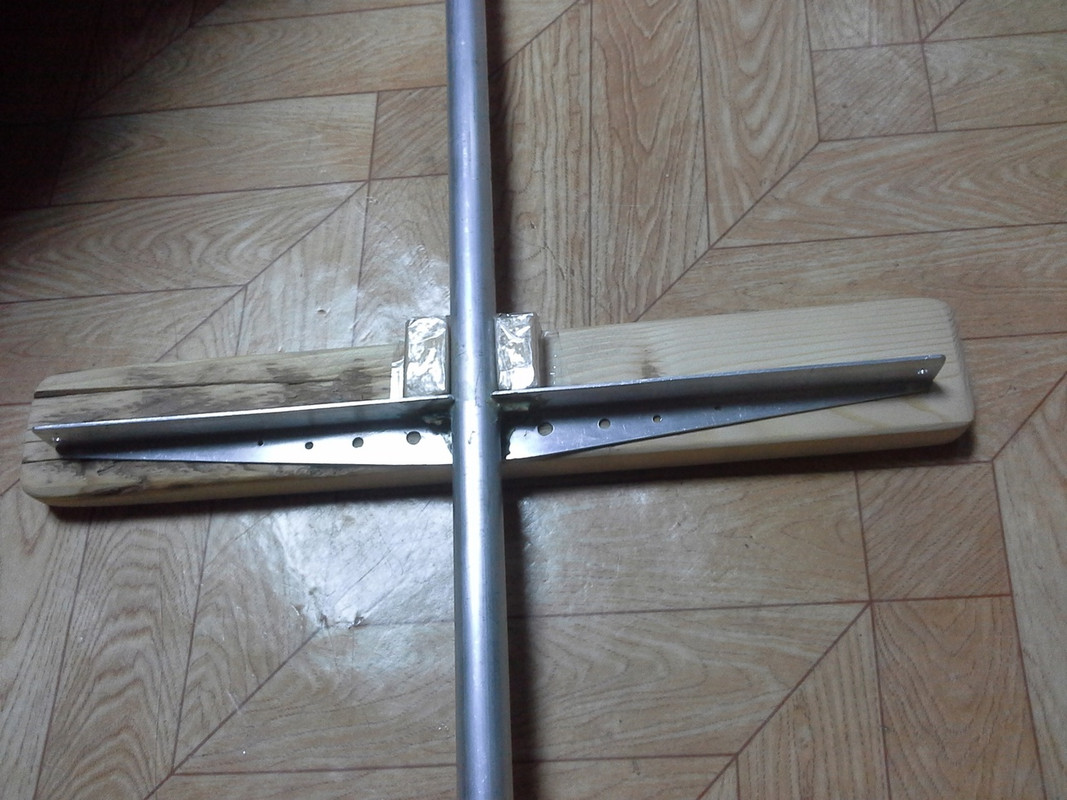 краспица из алюминиевого уголка и верхний крепёж вант на мачте, а также