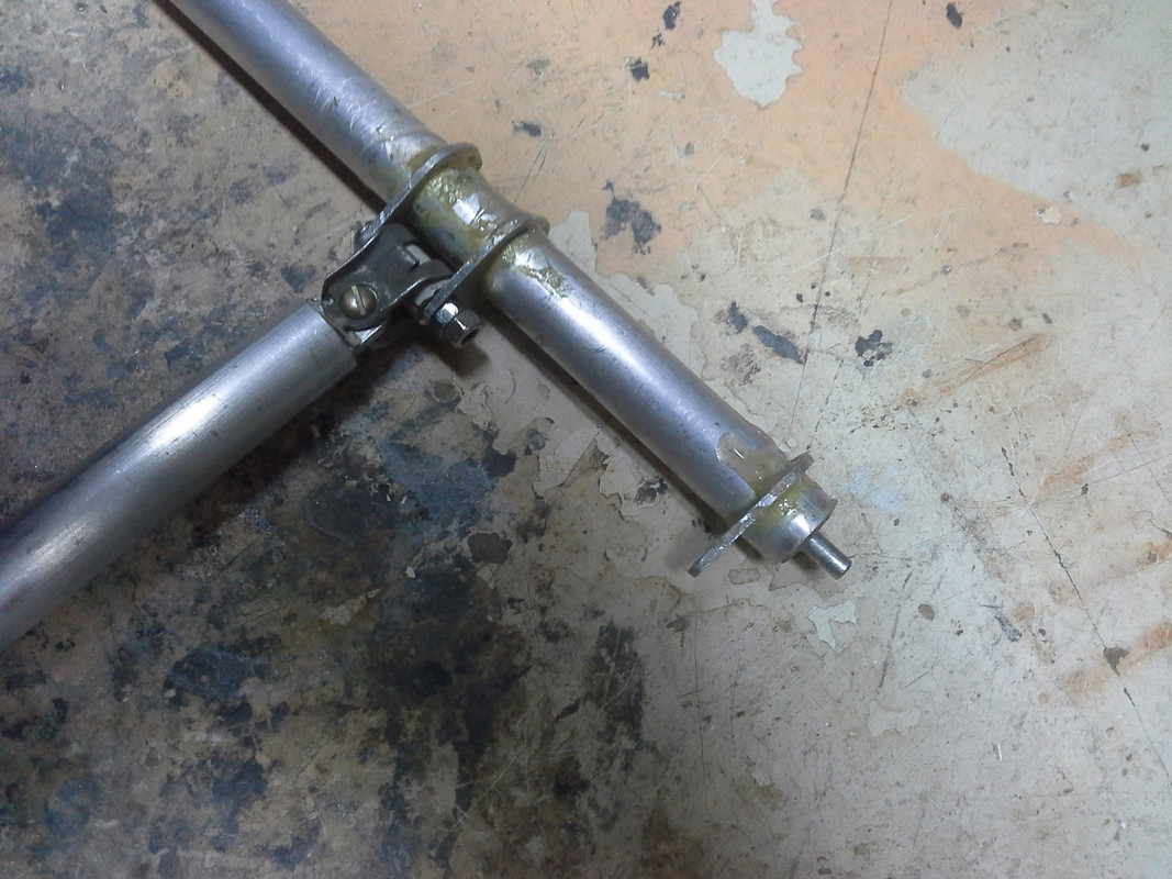 Шарнир гика решил сделать из хомута какого-то, одна ось шарнира алюминевая трубка с пластиковыми колечками в роли подшипников мягких