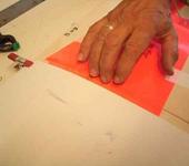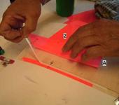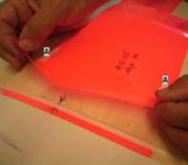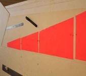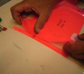 3. Кладу с верху пленку и маркером рисую парус, места усилений, вырезаю