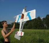 Я такой сделал под ASP0.21, винт 10х4. Чтобы попасть с центровкой, аккумы (4хААА) пришлось под задний гаргрот засунуть. Из изменений - крыло разъёмное из 2х консолей с креплением через фанерную пластину (пенал между лонжеронами). Летает классно, мотора более чем достаточно, была мысль поставить 0.15, но как-то не гламурно с большего на меньший переходить. Самолётиком очень доволен, но если будущей зимой буду новый делать (этот уже потрёпан, больше при перевозках, хотя и отлетал совсем не мало), крыло сделаю на трубе - 12мм в диаметре вполне хватит, может меньше. С фанеркой не понравилось, люфты появляются. Желаю удачи в постройке и полётах!