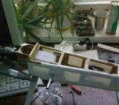 По фюзеляжу скажу, что по чертежу от 2ух метрового бензиныча строить вы погорячились. Там другой вес, своя нагрузка, свои усилия. На 46-52 калилки вполне бальзой обходятся. Если ее нет, опятьже можно было увеличить площадь облегчений, бальзу 1мм заменить картоном с пропиткой, и т.д., в общем сделать все чтобы не нагнать вес. Самолеты подобные вообще на 50% крепость свою имеют за счет пленки. И поэтому хрупкости необтянутой модели не стоило боятся.