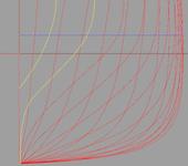 Я так сам думал сделать, только при создании батокса не указвать линию диаметральной плоскости. Тогда синяя линия будет идти от первого шпангоута до последнего и ничего резать не надо. Ну а потом создать отдельную кривую, соединяющююся с уже созданной. Вот ее и редактировать, а потом объединить. Просто я думал, что можно не делать лишних операций, а закрепиться в нужной точке. Потом редактировать окончание линии.