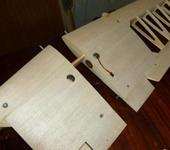 На каждой из нервюр №1-4 перед склеиванием крыла сделай ножом по два прореза на глубину примерно 0,2-0,3 толщины бальзы между широкими пазами с обеих сторон нервюры для того чтобы потом было легко выламать дырки для установки пенала под рейку соединения консолей. Расстояние межту рисками -по толщине пенала, который надо будет сделать заранее. Точнее сначала сделать рейку. Это рейка из сосны толщиной 10мм, высота - переменная, по расстоянию между полками лонжерона за минусом двух толщин реек, которые будут соответсвенно верхом и низом пенала. При наличии 1 мм фанеры рекомендую сделать рейку трехслойной т.е. планка не 10мм, а 8 мм и с обеих сторон приклеить фанерку 1 мм. Потом по этой планке сделать два пенала- один на правую консоль, второй соотв. на левую,. Пенал (его еще можно назвать ножны)- это вверху и внизу рейки, толщину которых ты учитывал при изготовлении соединит. планки к которым приклеены 1 мм фанерки и обмотано нитками на клею. Потом уже по этим пеналам сделай риски на нервюрах для выламывания, только не перереж их раньше времени.