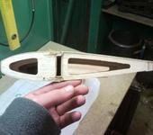 Кабанчик элерона- зто просто винт М3 длиной 35 мм. зафиксированный в элероне гайкой, на этот винт накручивается серьга, которая тоже контрится гайкой. Длина серьги делается такой , чтобы отверстие под ось вилки (законцовки тяги) была на перепендикуляре к хорде крыла восстановленном из оси вращения элерона , иначе будет дифференциальное (неодинаковое) отклонение элерона вниз и вверх. Хотя часто специально делают дифференцирование- но это уже тонкости настройки для профессионалов. Место располжения кабанчика - примерно 60 мм ок конца элерона (или начала) со стороны цетроплана, т.е напротив отверстия в качалке руль. машинки (стервопривода) Плечо качалки примерно 13-16 мм. В этом месте элерона надо было вставить кусочке массива из бальзы. Но это можно сделать и сейчас- если вырезать отверстие в верхней или нижней обшивке элерона в этом месте. Вставку луче делать сплошной от кромки до кромки шириной примерно 15-20мм.