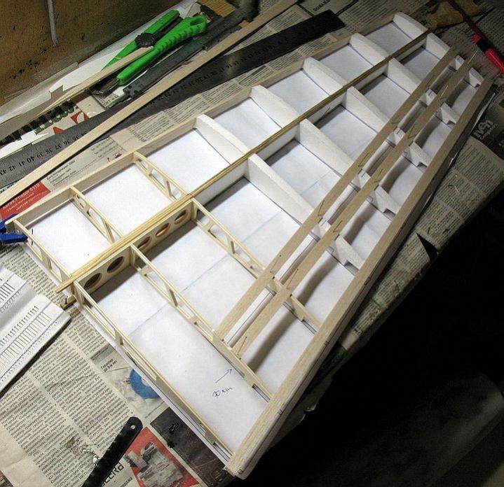 Извиняюсь за долгое молчание. на праздника привезли внука- все выходные были заняты . Да еще дома ремонт начал. А ремонт, как известно это не событие - это состояние, т.е. теперь уж точно не скоро покрашу свой F3A. Что касается доработки нервюр- это можно, но не сею минуту. Тем более , что ты ведь крыло без подпорок склеил ровно. Так точно клей и стабилизаотр и киль. То есть собери все нервюры на полках лонжеронов потом положи на ровный стол а под заднюю кромку подложи рейку такой высоты, что бы хвостики по высоте получились посередине между полками лонжерона. Прижми все это грузиками по полкам и по задней кромке и приклей полки с нервюрам. Когда снимишь грузики- все должно быть ровно. - клей спокойненько заднюю кромку и все остальное.