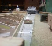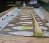 И похоже фанерные боковинки носовой части ты тоже не сошкурил на нет в месте их стыка со стрингерами - это уж точно теперь по месту - хрен сделаешь.