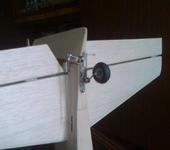 Кабанчик элерона- зто просто винт М3 длиной 35 мм. зафиксированный в элероне гайкой, на этот винт накручивается серьга, которая тоже контрится гайкой. Длина серьги делается такой , чтобы отверстие под ось вилки (законцовки тяги) была на перепендикуляре к хорде крыла восстановленном из оси вращения элерона , иначе будет дифференциальное (неодинаковое) отклонение элерона вниз и вверх. Хотя часто специально делают дифференцирование- но это уже тонкости настройки для профессионалов. Место располжения кабанчика - примерно 60 мм ок конца элерона (или начала) со стороны цетроплана, т.е напротив отверстия в качалке руль. машинки (стервопривода) Плечо качалки примерно 13-16 мм. В этом месте элерона надо было вставить кусочке массива из бальзы. Но это можно сделать и сейчас- если вырезать отверстие в верхней или нижней обшивке элерона в этом месте. Вставку луче делать сплошной от кромки до кромки шириной примерно 15-20мм.