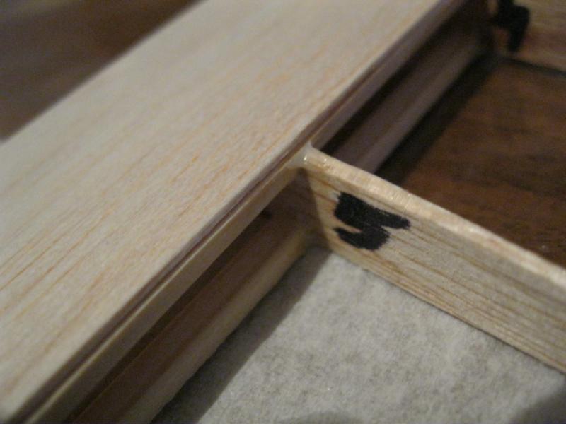 Если “от балды”, тады- ОЙ. А если по чертежу - то там четко видно, что на лобике они занижены на толщину зашивки. А задняя часть сделана по профилю- без занижения. Сечение полки лонжерона, тоже сделано таким, что бы зашивка лобика ложась на него была как раз заподлицо с задней частью, т.е. по профилю. Чтобы не повторять подобных ошибок- РАСПЕЧАТЫВАЙ ЧЕРТЕЖИ В МАСШТАБЕ 1:1, потом либо наклеивай вырезки из него на бальЗу, с помощью клеющего канцелярского карандаша, либо переводи на бальЗу растворителем, как предлагали здесь же в ранних постах .А потом вырезай ТОЧНО ПО ЛИНИИ, Вот выкопировка из чертежа.