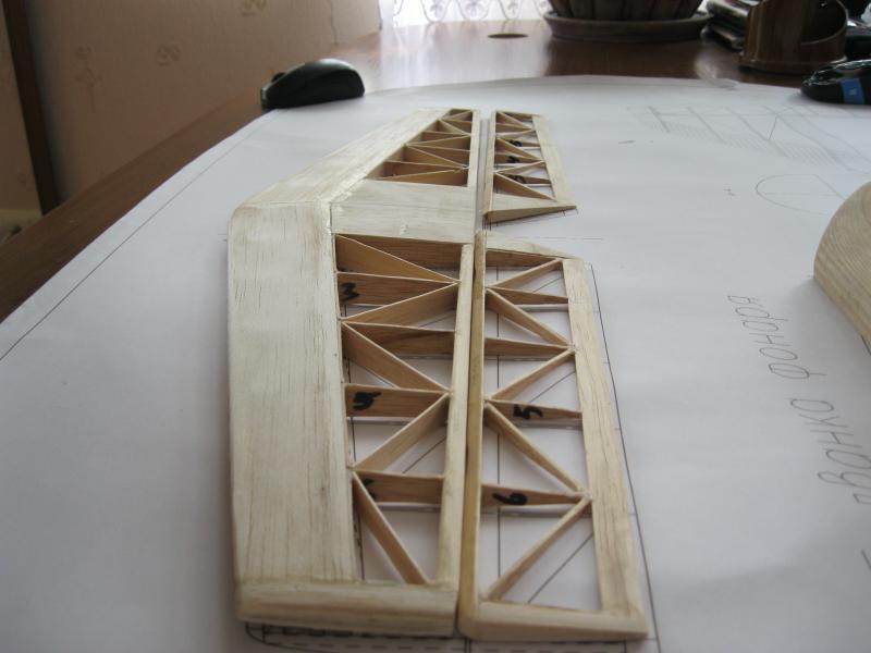 Да простит меня уважаемый Александр. Я кружке для пацанов вашу модельку немного видоизменил. Сделали ей более по виду современное крыло и стабилизатор, с достаточным сужением, ну и так, по мелочам. Стабилизатор, тот что на нашем чертеже, от него взяли только форму, и сделали плоским.