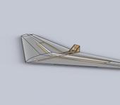 как и сообщалось ранее, размах 1248, хорда с 500 до 130, угол почти 45 градусов. вес пока что 1 кг. Можно грузить дальше, нагрузка на крыло при 1.5кг будет 31 г/кв. дм., что должно дать если не планер то достаточно к нему близко.