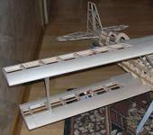 Толщина профиля нервюр в два с лишним раза меньше, чем на самике на котором когда-то ( после были другие самики и другие моторы) я летал (размах 140см) и профиль крыла симметричный, передняя часть которого была совсем без капота и не маленькая, .25 его таскал и это был АСП, а он в отличии от Осла крутит 12000 оборотов.