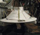 На снимках (импеллер, аккумулятор и регуль сняты) направляющий аппарат, изменяющий направление потока воздуха на 90 градусов. К направляющему аппарату прикреплено кольцевое крыло, расположенное напротив щелевого отверстия. Четыре “громоотвода” для простоты крепления и регулирования положения кольцевого крыла.
