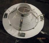 На снимках (импеллер, аккумулятор и регуль сняты) направляющий аппарат, изменяющий направление потока воздуха на 90 градусов. К направляющему аппарату прикреплено кольцевое крыло, расположенное напротив щелевого отверстия. Четыре “громоотвода” для простоты крепления и регулирования положения кольцевого крыла.