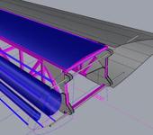 Потом идет набивка. Построения опираются на уже сделанное. Тогда не будет разнобоя. Например, лонжероны. Делаю проекцию с четежа на шкурку. По полученной линии строю балки лонжерона. Понятно, что они встанут точно на место.