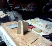 При снятии с болванки обнаружил что пенопласт внутри расплавился, не понятно почему. Если эпоксидка при отвердении нагревается то почему кабина изнутри остается ровной, хотя наверное все правильно. она начинает схватыватся а потом когда уже прилично твердая сильно греется.