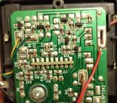 В приемнике из-за проводов плохо видно. Предполагаю, что вход - это вывод сборки, соединенный с левым по фото выводом C9, но не факт. Явно это кто-то из нижнего ряда выводов микросборки. Надо, для начала, прозвонкой мультиметром исключить те, что идут на +/- питания и на переключатель.
