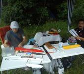 - примерно на100-человек было2-3 палатки, и около5 столов. По словам одного из “организаторов”,которого мы видели на стартах 2 раза за 5 дней соревнований,никто не обязан предоставлять столы и палатки для подготовки моделей к старту.Многие приехали из дальних регионов(Челябинск,Благовещенск,Украина,Питер, и т.д.),и не смогли привезти с собой палатки,столы,стулья.