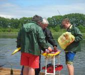 После 10 минут гонки подается сигнал, после которого модели, участвующие в первом этапе гонки, должны закончить начатый круг, подведены к стартовому мостику и вынуты из воды. Только после этого команда имеет право выпускать модель следующего этапа.
