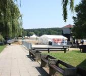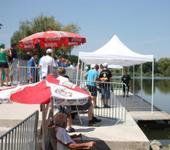 Добираться на авто - муторно (дороги узкие и часто по городам). Место -шикарное. Озеро 2км и залив. Ветру разгуляться неоткуда. Зона отдыха. Красивая парковая зона с многочисленными деревьями. Много гравийных дорожек. Стационарные туалеты и душ. Вода горячая и холодная. Много площадок для стоянки авто (в тени). Кемпинг разбит на большой территории. Всем места хватает. Почти все на своих авто, сплошные палатки и передвижные домики. Работает буфет - все есть: вода,пиво, напитки. горячие и другие блюда, мороженное. Погода отличная, солнечная , теплая без осадков (пока). Везде силовая разводка электричества. Огромный шатер для участников со столами и лавками. На воде изготовлен фундаментальный причал из бетона метров 25.