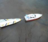 провел тренировку спасательной опирации. На носу у ФСРки магнит и сзади на корме у китайской игрушки на удочке тоже магнит , магниты мощные от СД-рома , процес зацепки очень крапотливый , сначала минуты 2 ходил рядом зацепиться не мог ( управление дискретное и он очень сильно дергается, и магнит раскачивается ), а потом просто подошел и с заносом кормы зацепил . Тяги у этого катерка мало и против ветра уже хренова тянет, а так идея помоему хорошая!!!
