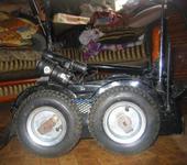 сделан он целиком из стали вес 43кг ,управление с модельного пульта 7 каналов ,но для управления надо 11поетому 6 -6 переключается 7мым работают только попеременно (спульта потомучто с контроллерами и прчим т.п не дружу -даже радиоприемник спаять немогу)
